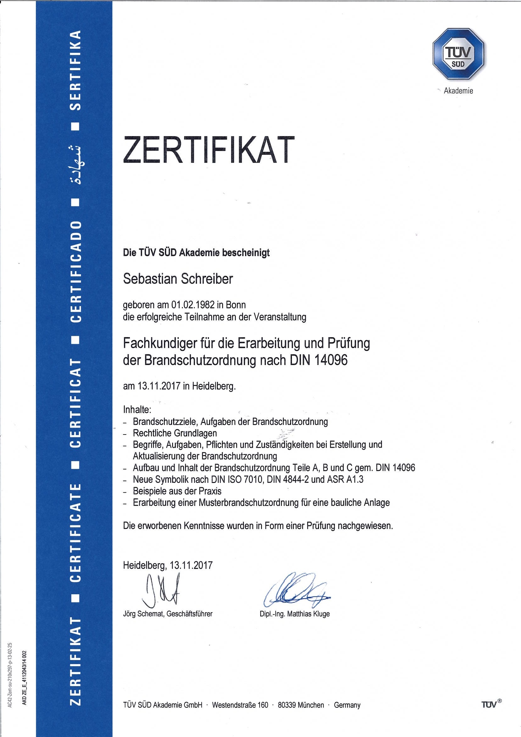 Befähigte Person zur Erarbeitung & Prüfung von Flucht- u. Rettungsplänen sowie Feuerwehrplänen