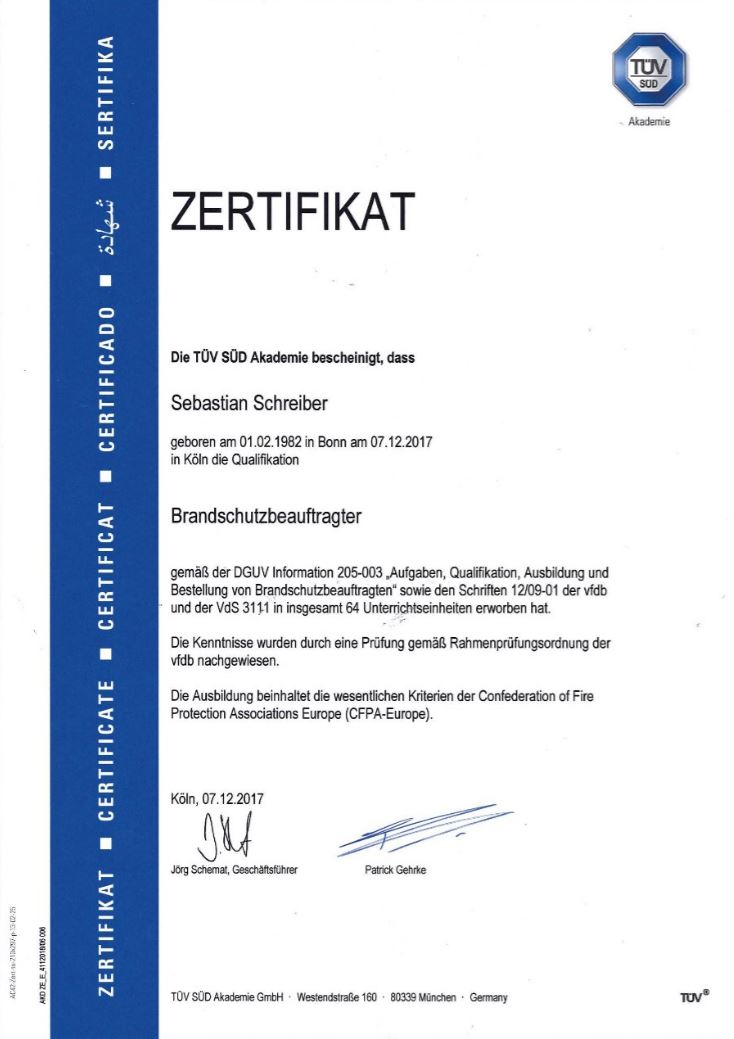Befähigte Person zur Erarbeitung & Prüfung von Flucht- u. Rettungsplänen sowie Feuerwehrplänen